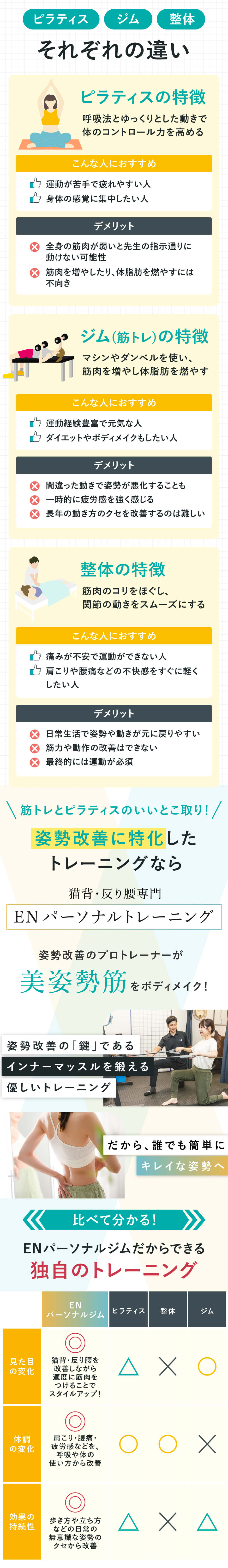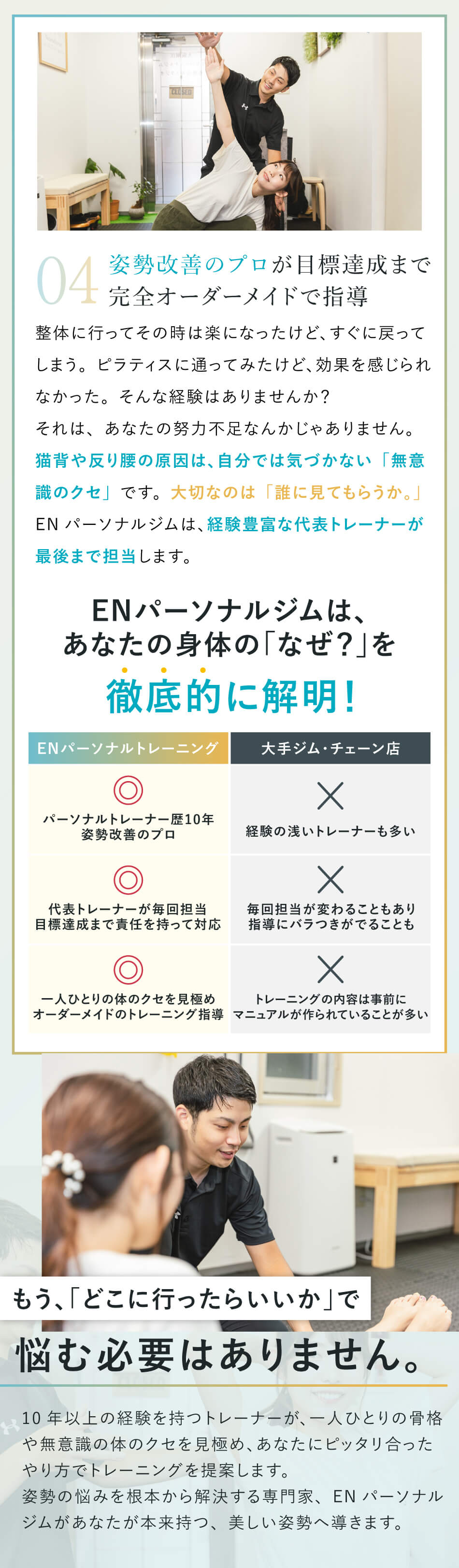 「姿勢を改善しなければ、根本的な解決にならない!」という強い思いから猫背・反り腰専門ENパーソナルジムを大阪堀江にオープンしました。